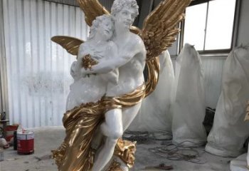 愛神附體西方情侶男女漢白玉天使雕塑