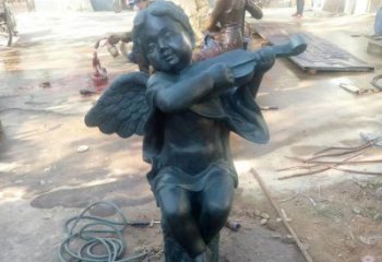 玻璃鋼仿青銅小天使彈小提琴園林雕塑
