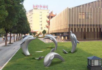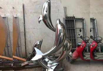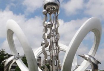 擁抱大海的海豚不銹鋼雕塑的美
